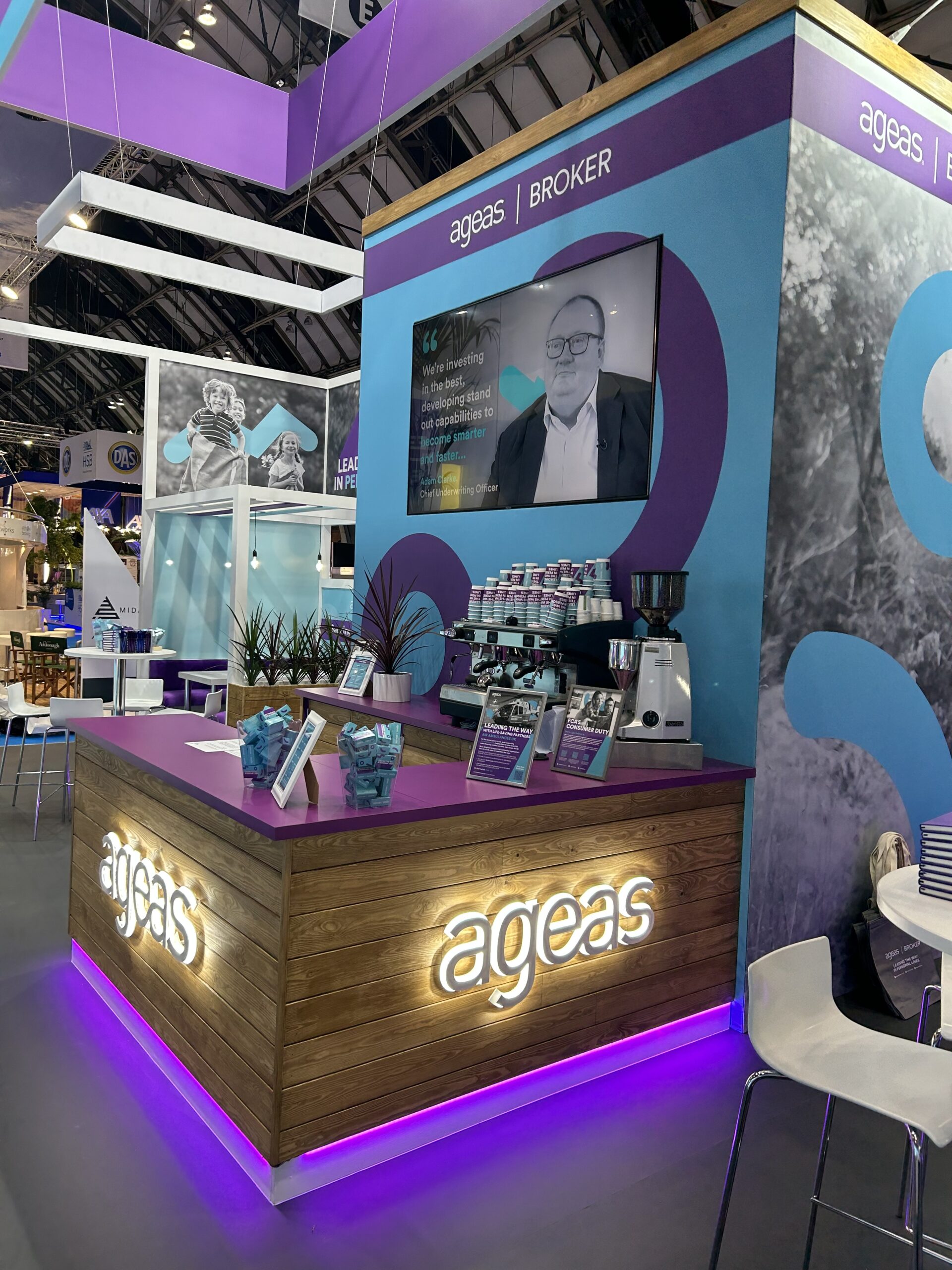 Consistency is key for Ageas, so for several years we’ve created the same size stand for the same location at the annual BIBA Conference. Within those parameters, however, our team has helped Ageas showcase all kinds of entertainment and hospitality ideas within a variety of dynamic stand designs. In the context of a heavily regulated insurance industry, we’ve helped give Ageas the freedom to be one of the most memorable and distinctive exhibitors at the show.