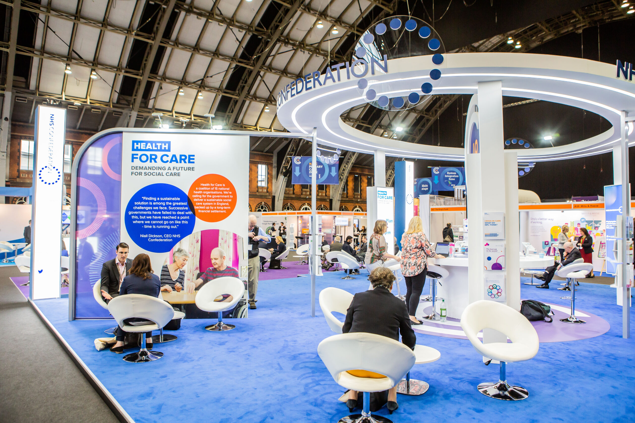 The NHS Confederation is the membership organisation at the heart of our healthcare system, and its annual NHS ConfedExpo welcomes over 5,000 leaders, professionals and partners each year. The Confederation’s own exhibition stand takes centre stage, and we’re proud to be the creators of this important conference hub.